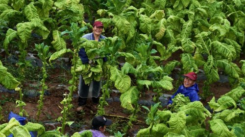 西乡县堰口镇烟农在烟田采收(姚峰摄)